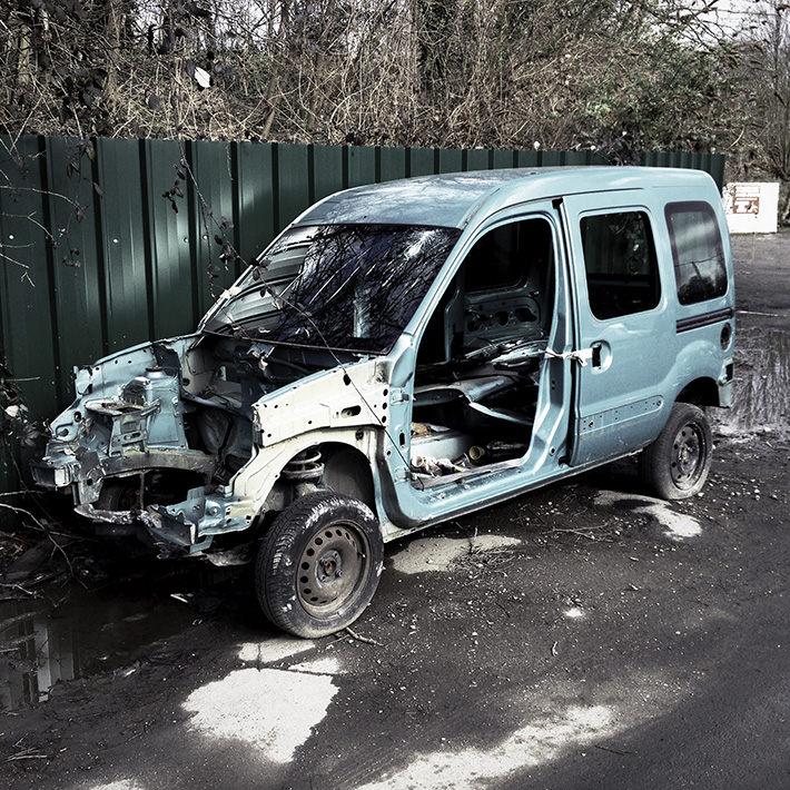 La proximité de l’ancienne casse automobile avait progressivement transformé le parking à ciel ouvert de la Courneuve en atelier sauvage de réparations et de vidanges discrètes où venaient s’échouer les voitures diverses et variées qui peuplent la périphérie. Economie souterraine nécessaire, inévitable, mais polluante. Huile noire sur le sol, terre gorgée de parfums lourds, pièces mécaniques tristes et abandonnées, quelques carcasses, chiffons souillés, bitume luisant, toute la poésie malsaine du dépotoir mécanique, le paysage classique du rebut mondial de l’automobile en fin de carrière.