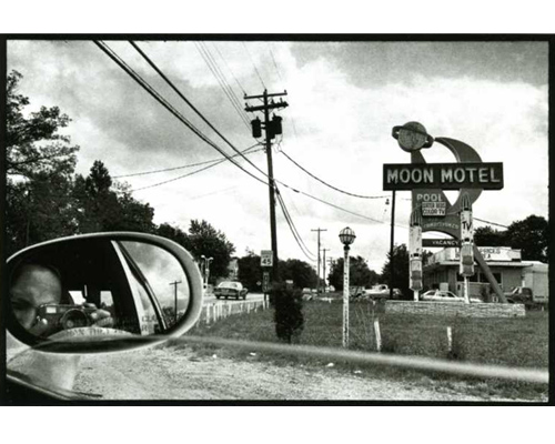 Tout au long de son histoire, la photographie nord-américaine s’est beaucoup intéressée au vernaculaire : cette culture de l’utilité, du local et du populaire tellement typique des États-Unis. L’œuvre de Shore est traversée par de multiples enjeux esthétiques ou culturels. Le vernaculaire est l’un d’entre eux. Les différents moyens de locomotion utilisés par le photographe lui ont permis de multiplier les occasions de confrontation autant que les points de vue sur cette américanité. Dans les œuvres qui ont été sélectionnées pour la présente exposition, le véhiculaire est en somme mis au service du vernaculaire.
