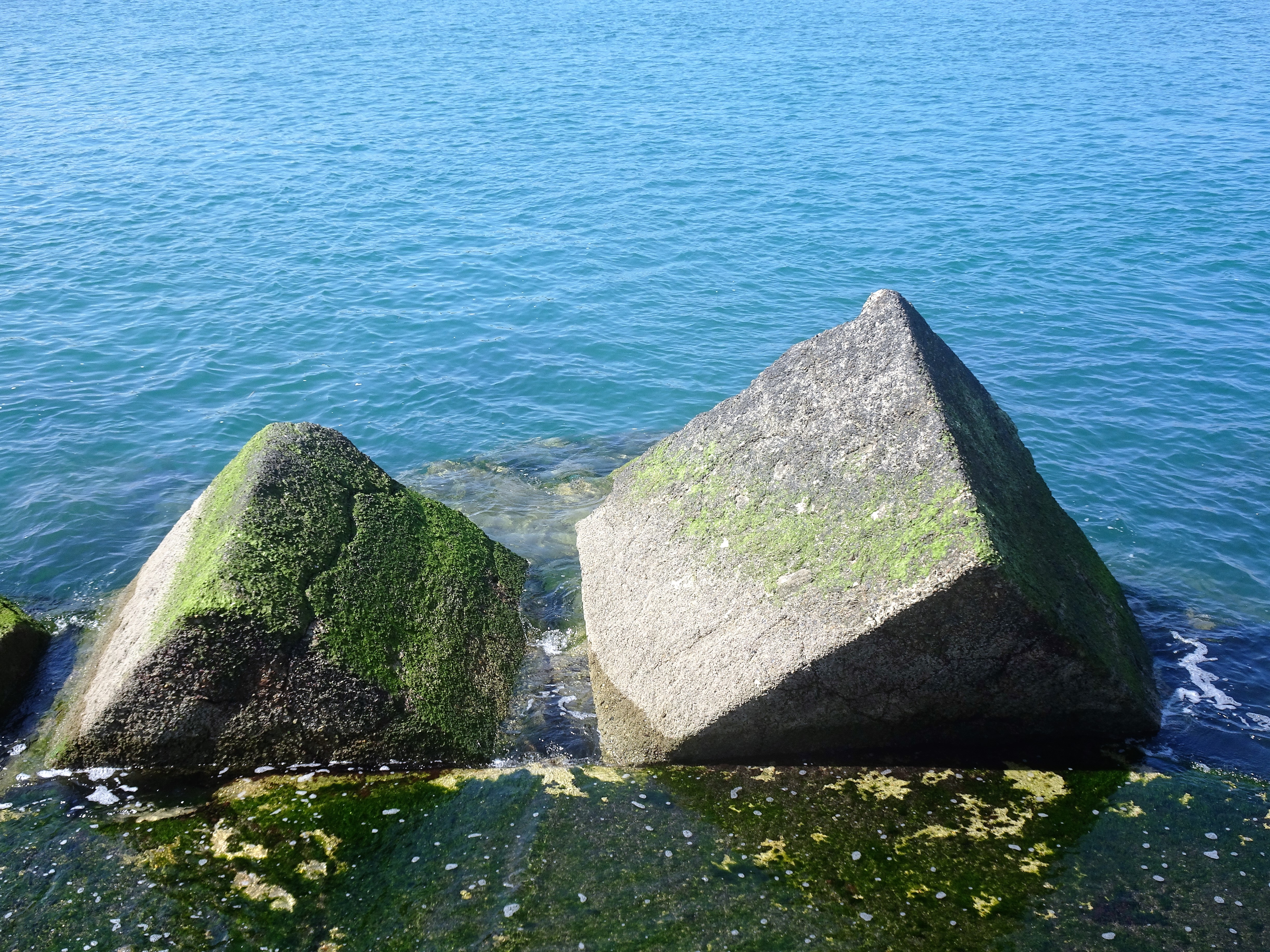 En focalisant l’attention sur les blocs nous découvrons un monde aux formes variées. Des rochers d’ophite taillés à la dynamite, dont les masses répondent aux exigences des calculs, aux blocs de béton rainurés aux formes étudiées pour résister à la houle. Ces cubes de béton rainurés, affichent un poids de 24 à 32 tonnes suivant les emplacements.