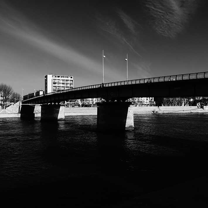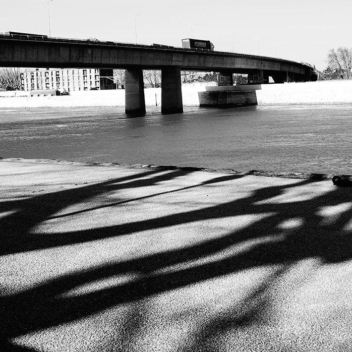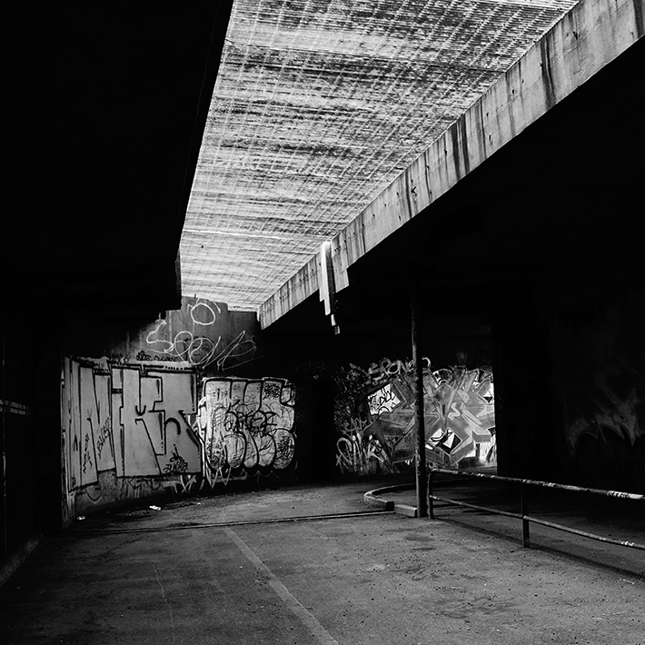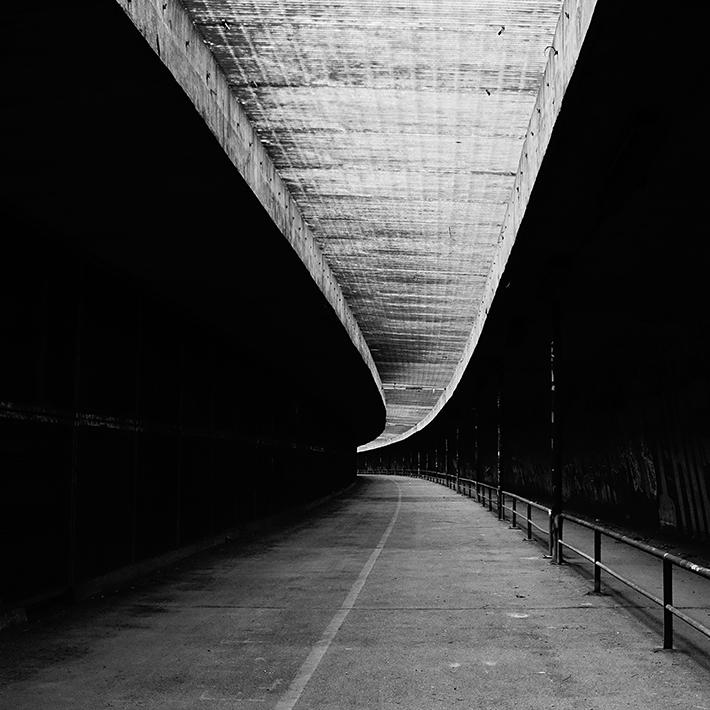 En effet, le lieu proposé, la voie sous le tablier du pont de la Nationale 113 sur le Rhône, présente la particularité d’être une voie pédestre et cyclable dans un caisson de béton éclairé par une grille zénithale située entre les 2 x 2 voies de la circulation des véhicules sur le tablier du pont. Cette construction est décrite dans les études comme un passage intérieur construit sous les chaussées principales. Nous y proposons un parcours partant du chantier de la Fondation Luma, jusqu’au passage inférieur du pont Ballarin, se poursuivant par une boucle effectuée sur l’autre rive avant de repartir à travers la friche industrielle SNCF vers le pont de la D35A pour regagner le centre-ville et la fameuse place du Forum.
