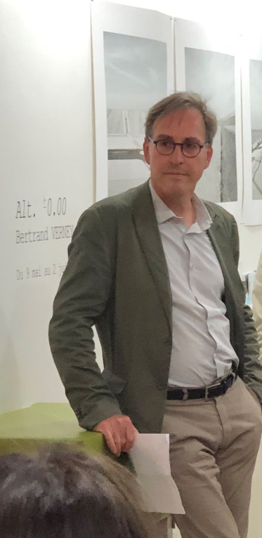 Lors de son intervention, Alexandre Petzold a expliqué sa démarche. Il a poétiquement établi un parallèle entre le développement de la photo et l’évolution de la nature, en montrant comment deux photos d’un lieu du chantier montraient un tapis végétal verdissant une ancienne zone de terre meuble. Il revendique une fidélité à ces lieux sur lesquels il intervient en trois étapes: Imprégnation, appropriation, restitution.