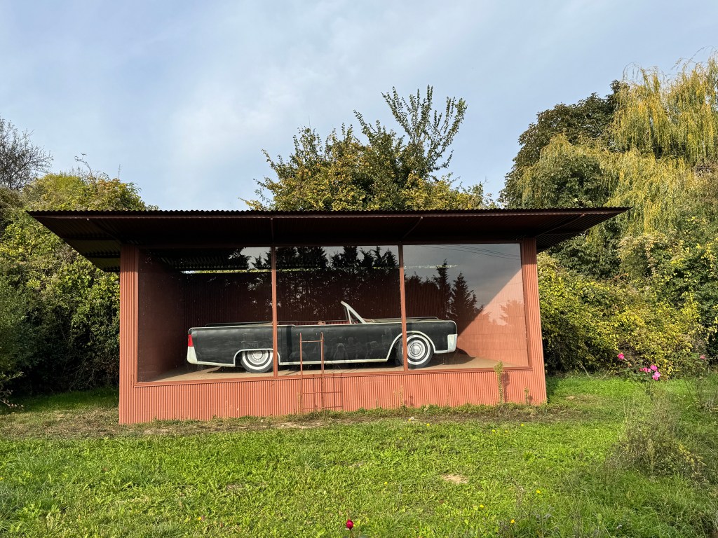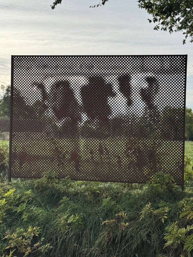 A voir les maisons bulles six coques de Jean-Benjamin Maneval derrière le moulin. En face se trouve l’espace d’interprétation du projet de Le Corbusier et Bézard qui héberge aussi une voiture en osier, autre expression utopique de l’architecte, construite pour Piacé le radieux par Christian Ragot, en 2012. « Les artistes nous offrent chaque année de nouvelles œuvres qui rejoignent le parcours gratuit ouvert toute l’année dans tout le village voire, comme cette année, jusqu’à Beaumont-sur-Sarthe, qui expose notre cône géant de signalisation », sourit Nicolas Hérisson. [ouest France, aout 2025]