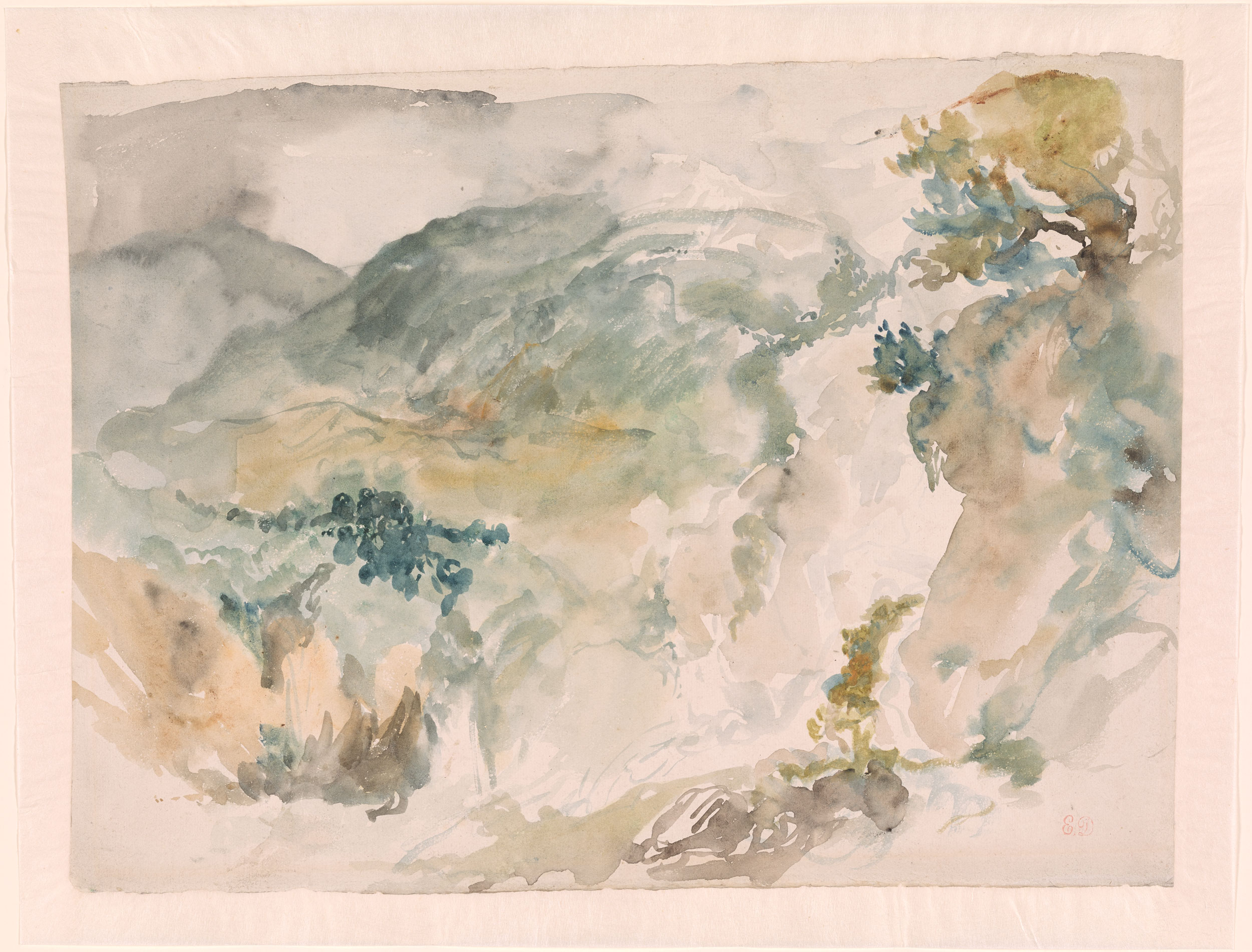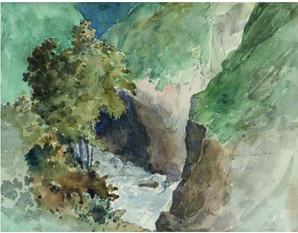 En 1845, Eugène Delacroix suit une cure aux Eaux-Bonnes dans les Pyrénées, pour soigner une laryngite tuberculeuse. Des aquarelles et croquis de son séjour paraissent dispersées à travers des feuillets, alors que son carnet dit « des Pyrénées » classé « trésor national » en 2003 est acquis l’année suivante par le Louvre. Il appartient à une série de 27 albums apparus en 1864 lors de la vente de l’atelier du peintre.