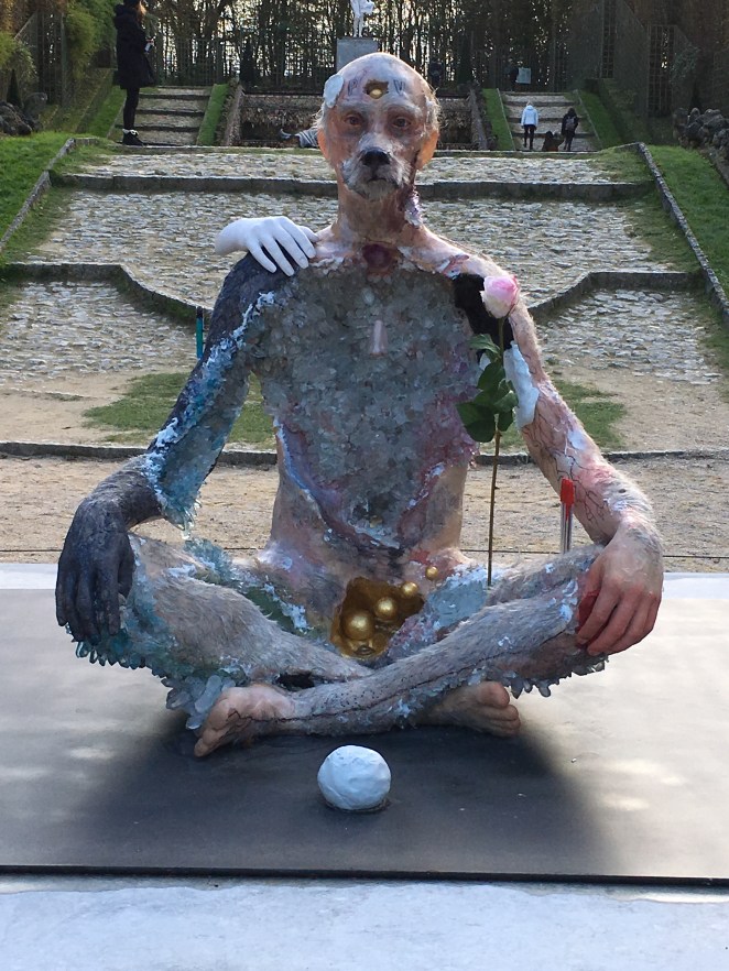 Une occasion de se laisser guider dans ce qui est l’un des plus grands musées de la statuaire en plein air. Seize artistes contemporains ajoutent leurs oeuvres à celle des créateurs auxquels Louis XIV avait confié l’ornementation des jardins. Ils ont conçu, en dialogue avec les organisateurs, une dramaturgie qui conduit le visiteur de l’un à l’autre des bosquets, ces étranges salons végétaux, selon une progression émotionnelle calculée, jouant avec les significations historiques ou mythologiques de chacun des lieux.